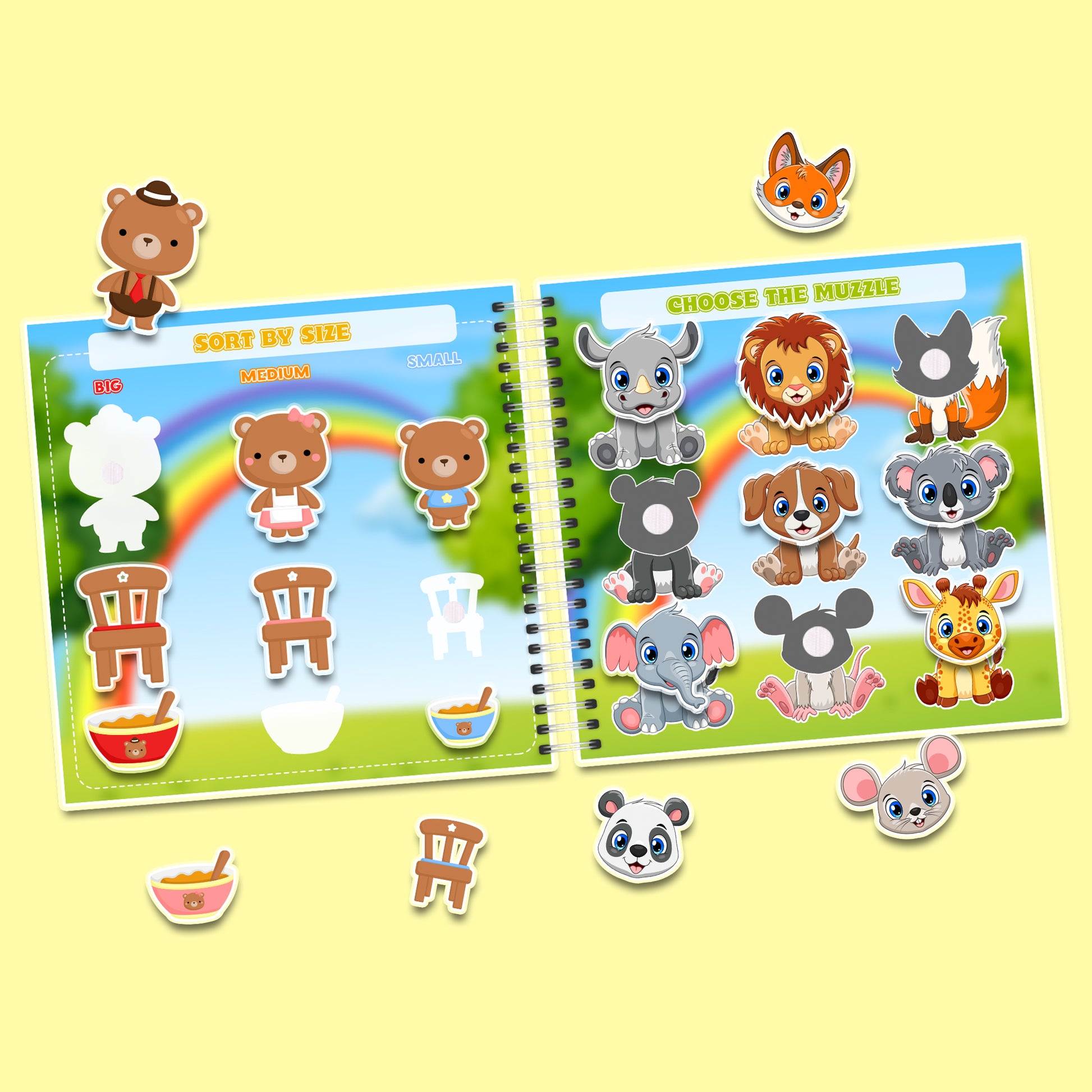 Alphabet, Farben, Formen, Transport, Obst & Gemüse (Ganzes & Teile), „Füttere den Tiger“ und vieles mehr!